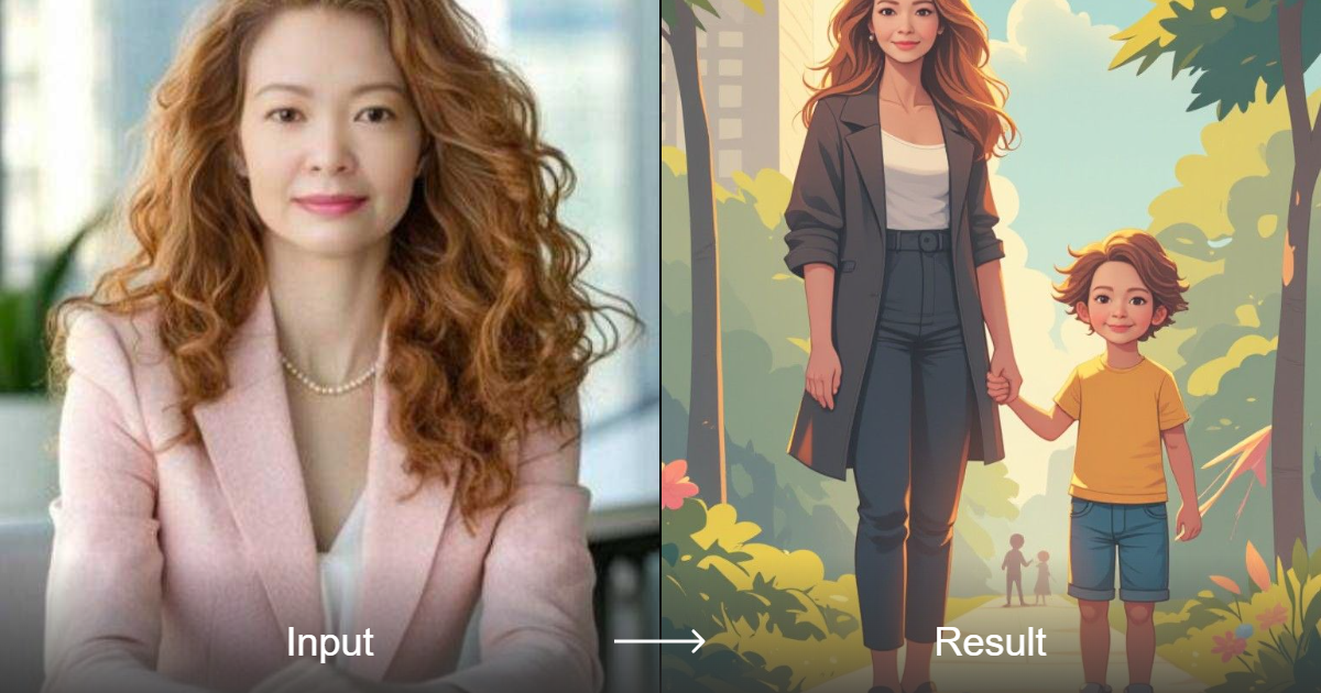 Experience the warmth of mother and son with our AI image generator, featuring anime and master styles.