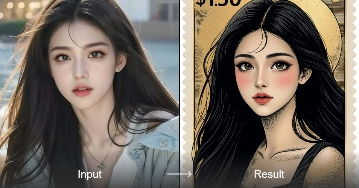 Generate high-quality master and paintings style stamps with the Portrait Stamp style converter. Get a close-up portrait of a person and "Portrait Series" text on top, with "$1,50" and "2024 a1.art" printed on the stamp.
