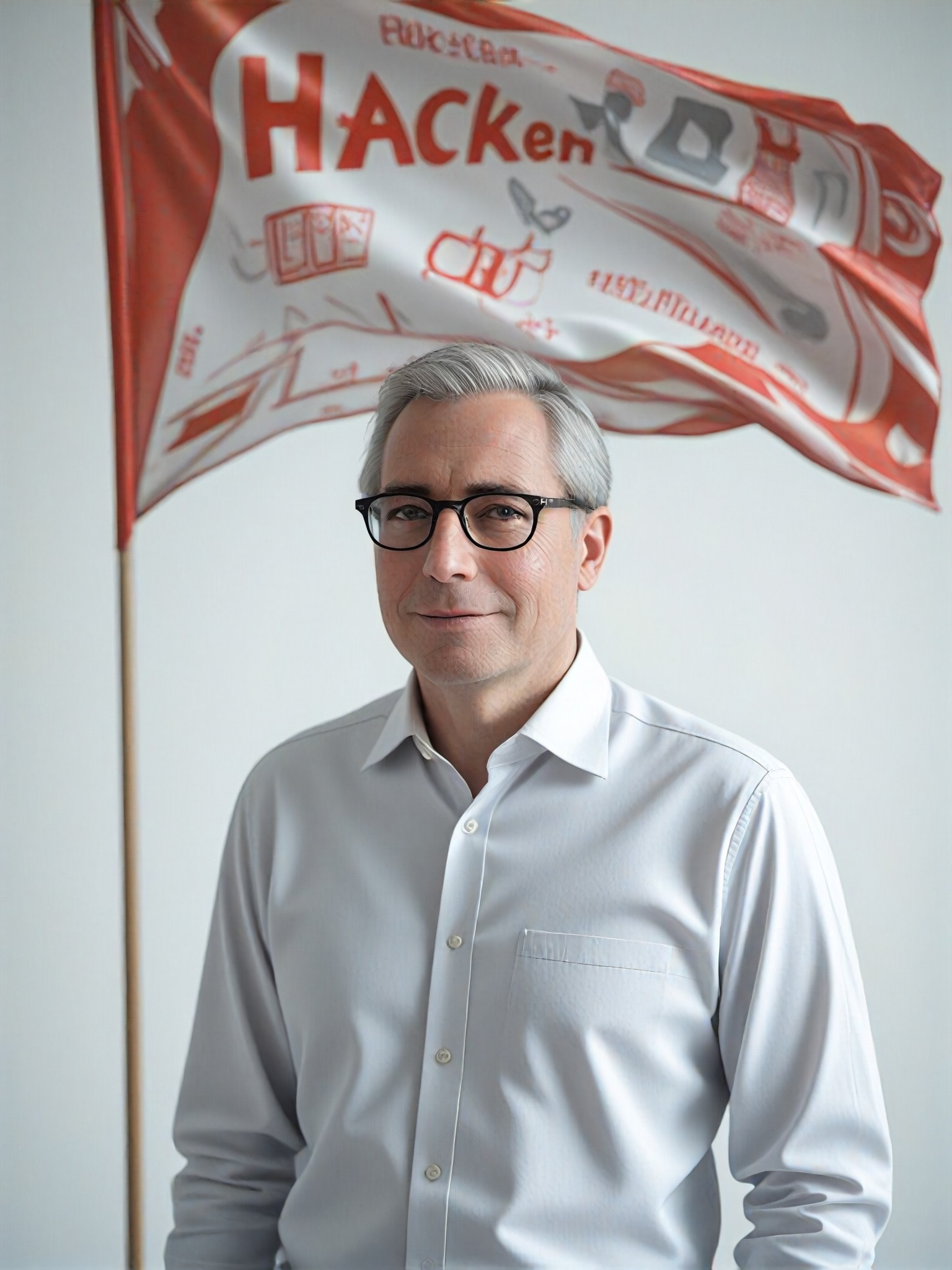 The Style Converter adds a Hackerrank mock test plagiarism flag to a photo, creating a digital painting, animation, featured, CG 1.0, and CG 2.0 style. Master illustration is also included. A person, upper body, wearing a white shirt, standing and smiling, with a huge Hackerrank mock test plagiarism flag behind them, in the output format example.