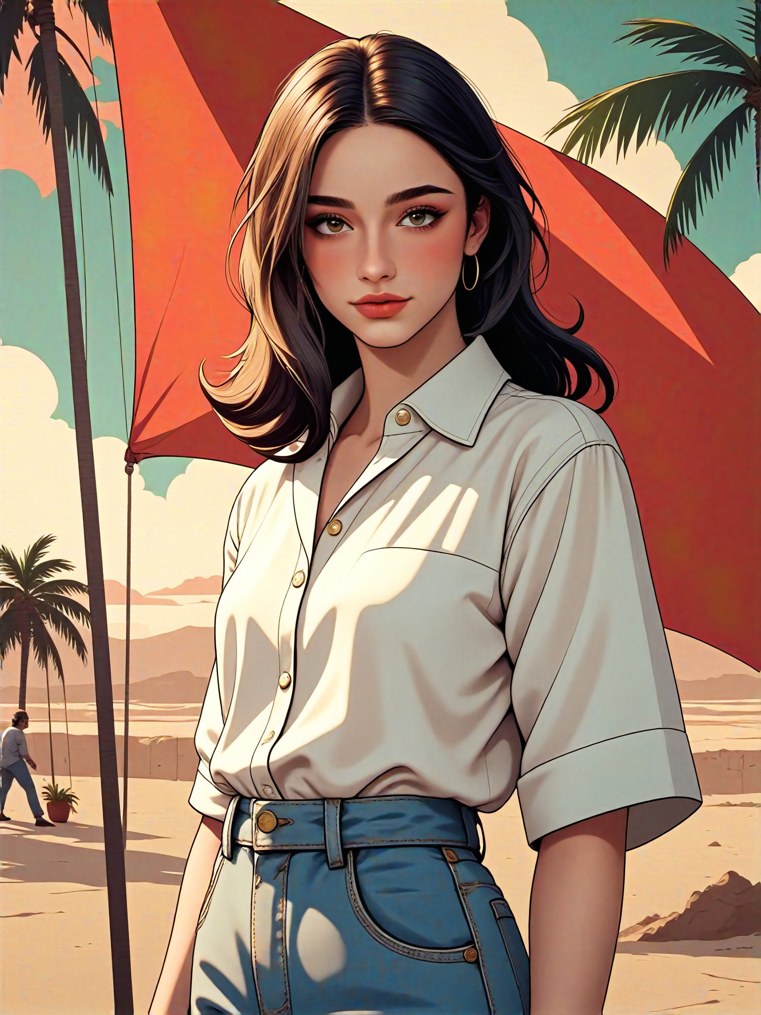The Add Kingdom of Morocco Flag to Photo style converter is an AI image generator that adds a huge Kingdom of Morocco flag to the background of a person or upper body. It is a digital painting, animation, featured illustration, and master CG 1.0 and CG 2.0 style. The output format is an image with a person wearing a white shirt and a huge Kingdom of Morocco flag behind them.