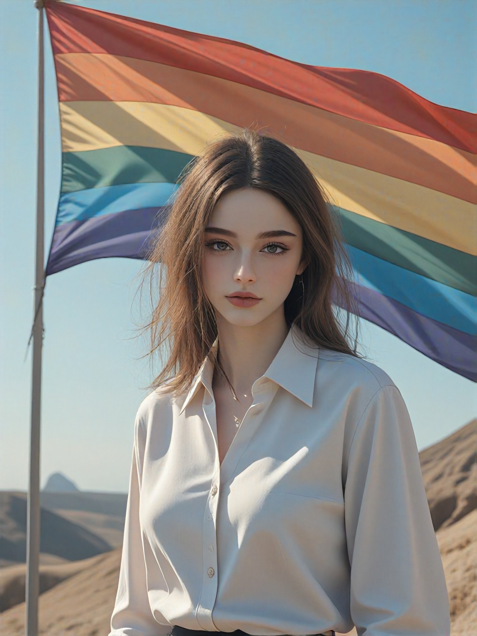 This style converter adds a huge hetero flag to the background of a photo, giving it a unique and personalized touch.
