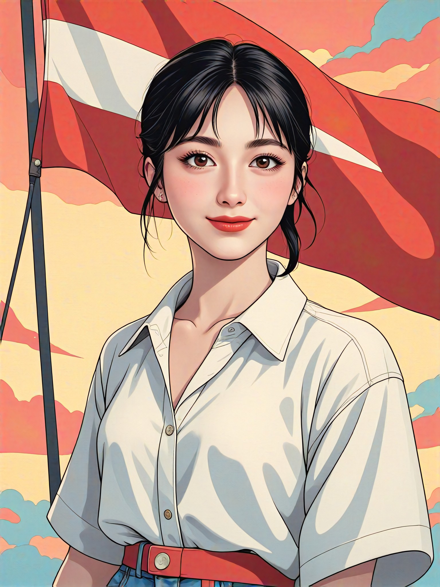 This style converter adds a huge antifa flag to the background of any photo. The output format is a digital painting with a CG 1.0 and CG 2.0 style. The generated image is a master, CG 1.0, featured, and digital painting, with animation and illustration elements. The output format is a digital painting with a huge antifa flag flying behind the figure.