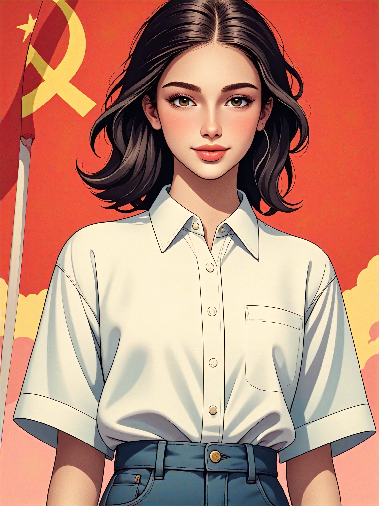 This style converter adds a large Communist flag to any photo, transforming it into an illustration, digital painting, animation, featured image, master piece, or CG rendering. The output format is versatile and can be used for various purposes.