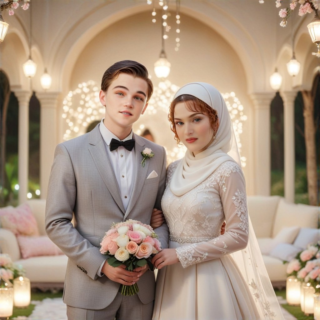 สร้างภาพถ่ายงานแต่งงานมุสลิมที่งดงามด้วยฮิญาบสีขาว โดยใช้ตัวแปลงสไตล์งานแต่งงานมุสลิมจาก a1.art | a1.art