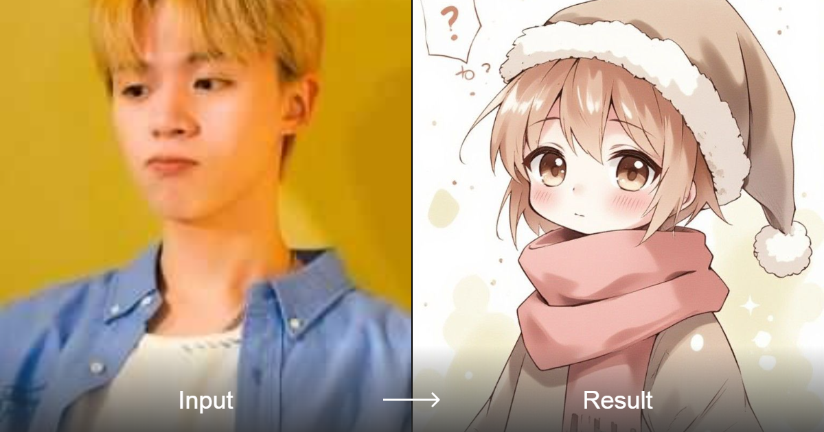 เครื่องมือแปลงสไตล์นี้สามารถเปลี่ยนข้อมูลอินพุตใดๆ เป็นภาพที่เน้นเทศกาลพร้อมตัวละครวันคริสต์มาส ผลลัพธ์คือภาพในสไตล์อนิเมะคุณภาพสูงที่เหมาะสมสำหรับการเฉลิมฉลองวันหยุดใดๆ