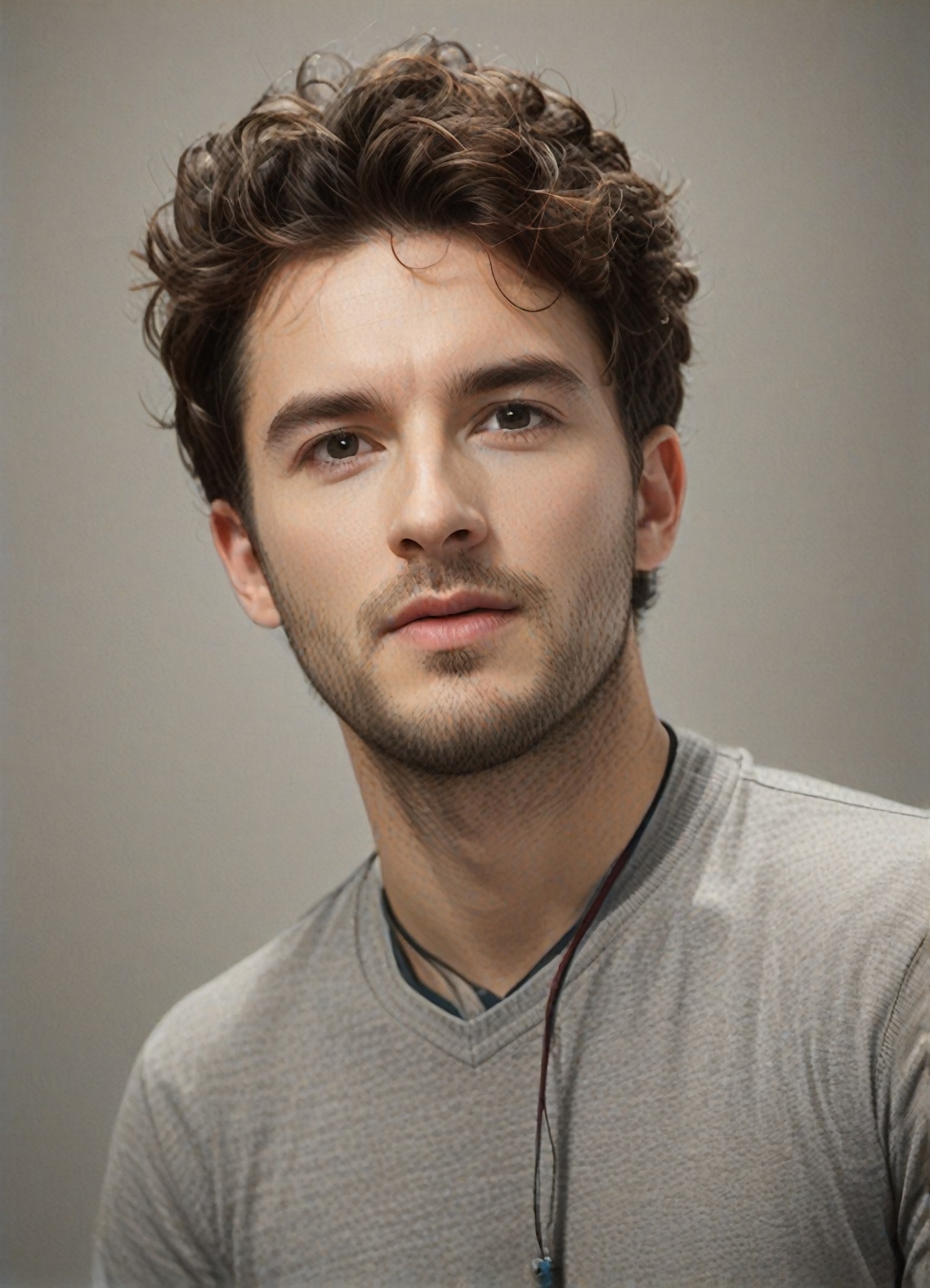 เครื่องมือลองผมหยิกวาดแบบเสมือนเป็นตัวสร้างภาพ AI ที่สร้างภาพถ่ายบุคคลที่สมจริงของคนหนึ่งคนที่สวมเสื้อที่เข้ากับทรงผมและสีผม รูปแบบผลลัพธ์คือ ตัวอย่าง: การถ่ายภาพ, นิยมความจริง, นำเสนอ