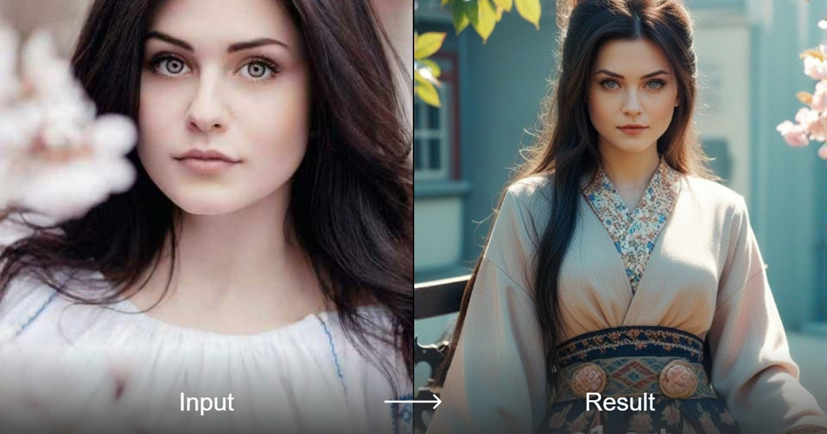 a1.art'ın AI fotoğraf dönüştürücüsünü kullanarak fotoğrafınızı kolayca zarif geleneksel Japon kıyafetine dönüştürebilirsiniz.