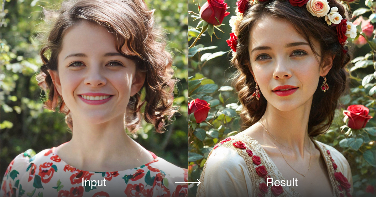 a1.art kullanarak fotoğraflarınızı şaşırtıcı bir hassasiyetle zarif antik çiçekli kıyafetlere dönüştürün. Şimdi deneyin!