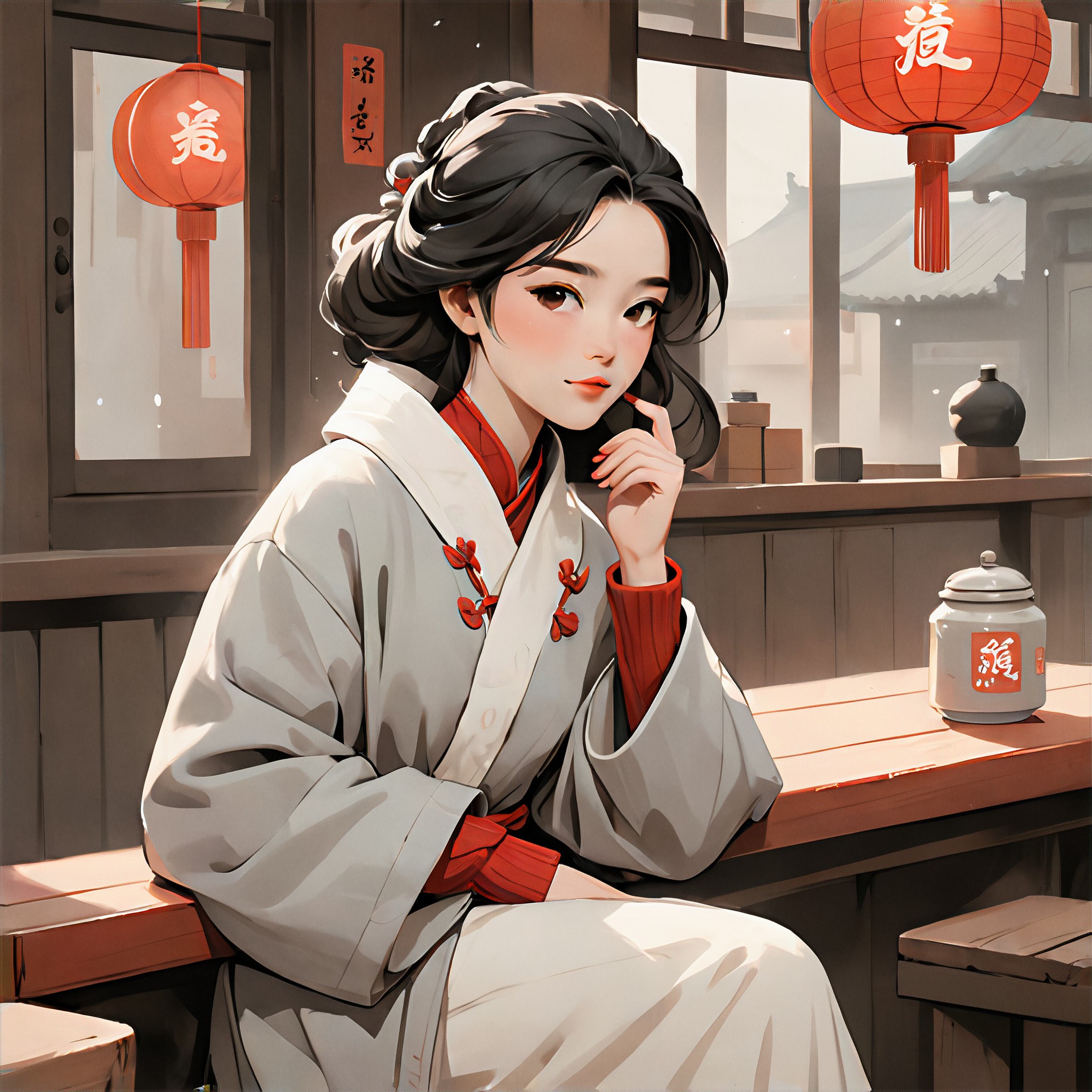 Chinese Style Illustration, Elegant Chinese Style, Beautiful light sense, Old Fashioned Girl (Female Only)