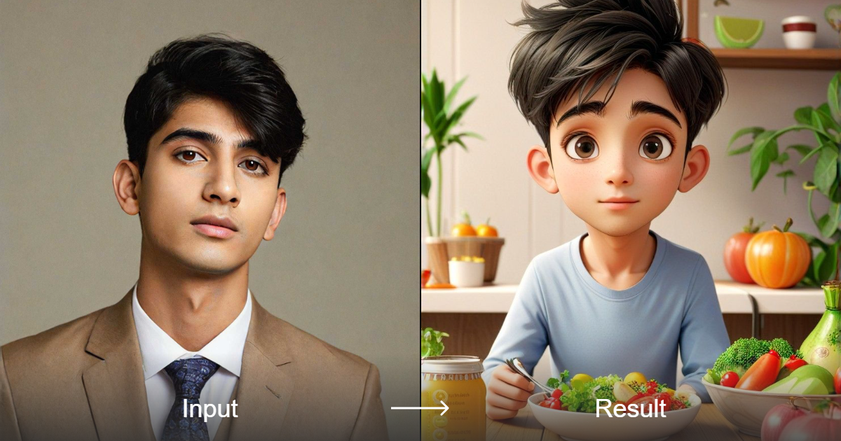 Yaratıcı tarz dönüştürücümüzle yemeklerinizi sihirli, sevimli ve ifade dolu 3D fantezi sanatına dönüştürün.