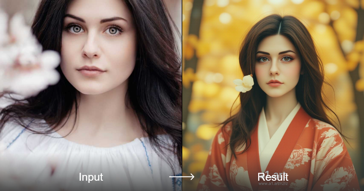 a1.art ile fotoğrafınızı geleneksel Japon kostümüne dönüştürün. Anında kültürel bir dönüşüm deneyin.