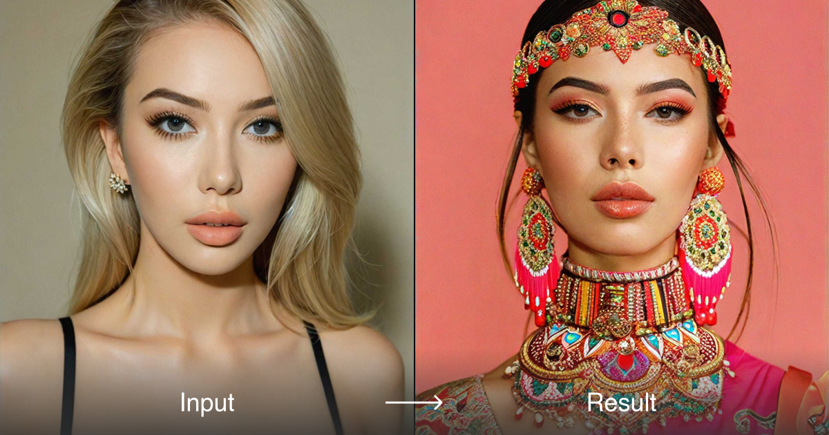 Fotoğrafınızı kolayca etkileyici geleneksel Hint kıyafetine dönüştürün. a1.art ile saniyeler içinde kültürel zarafeti deneyin.