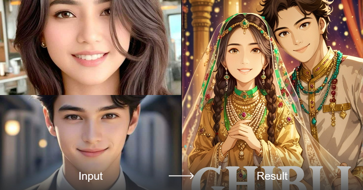 Resimlerinizi dijital animasyon ve resimleme efektleriyle hayranları için mükemmel olan Ghibli tarzında grup fotoğraflarına dönüştürün.