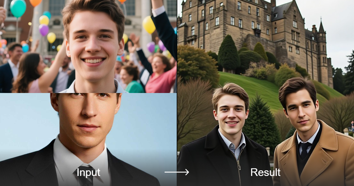 Transform your group photos into stunning portraits with the Edinburgh Castle style converter by a1.art, featuring realistic, portrait, and polaroid camera effects.