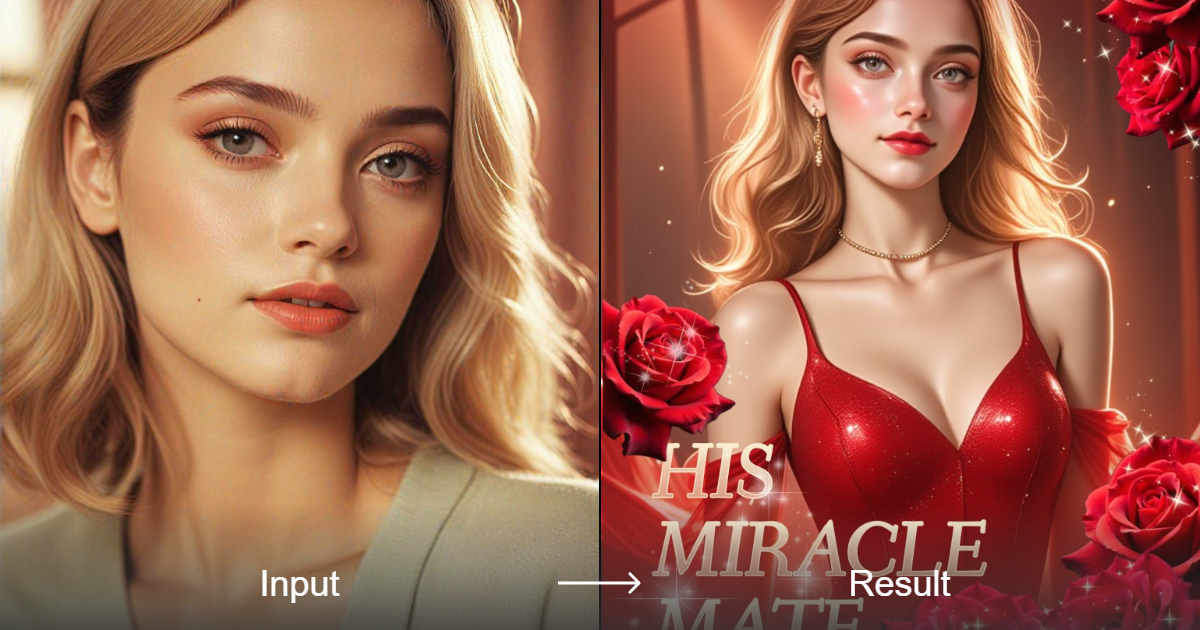 Transform your images into captivating 2.5D illustrations with A1.Art's Glamour Girl style converter, featuring CG fantasy and digital painting styles.