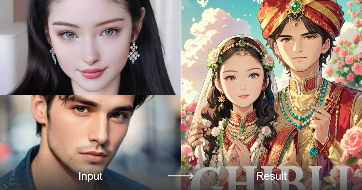 Ghibli Indian Couple Photo P1 - Artistic Anime Conversion | a1.art