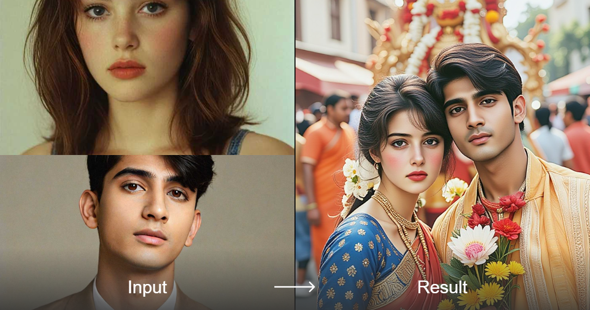 Transform your couple's memories into stunning Indian Ramanavami festival-themed portraits using our AI art generator.