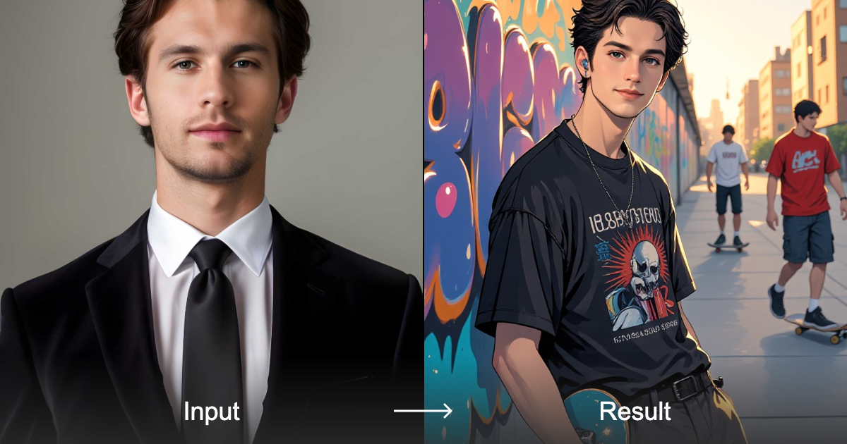 Transform your photos into vibrant neon, Y2K aesthetic, digital art with our Skater Boy style converter, perfect for game characters, manga, anime, and more.