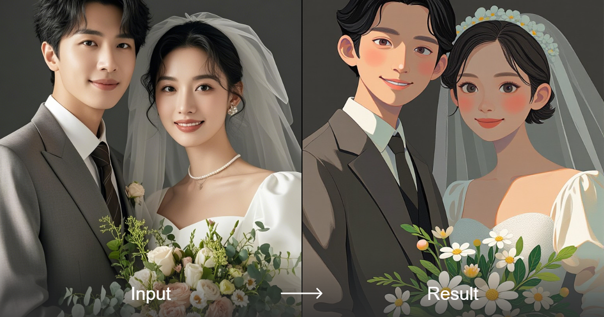 Transform your photos into digital art with a1.art's modern digital art style converter, featuring simplistic, cute, flat colors, anime, niji, and more.
