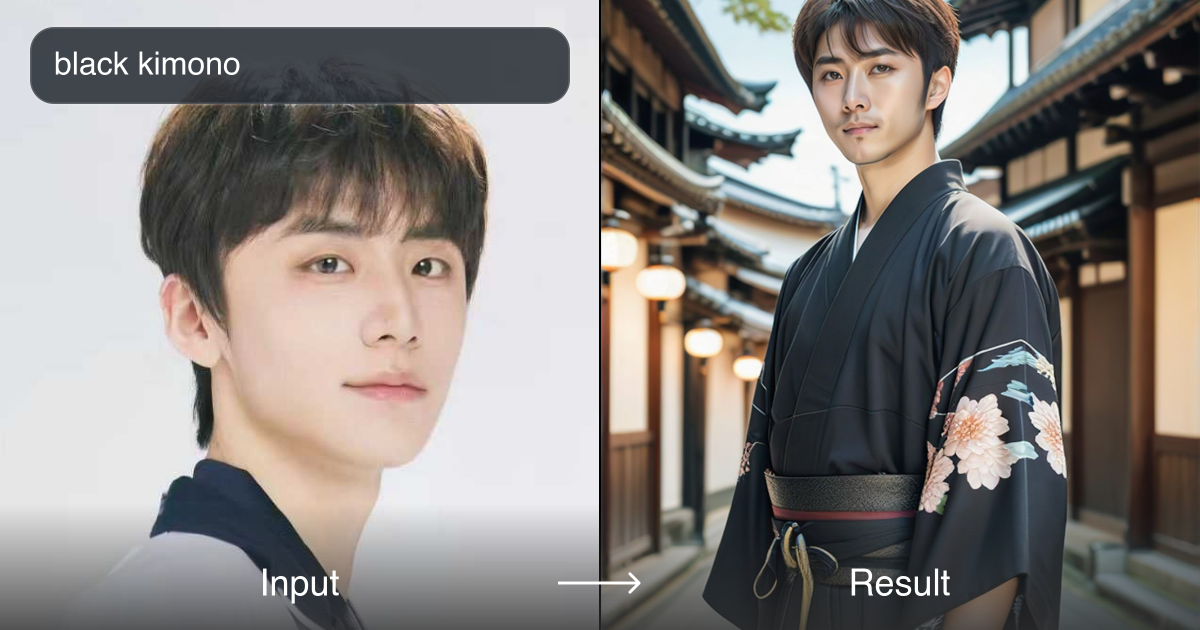 Convert modern attire photos to beautiful traditional Japanese outfits with a1.art in seconds.