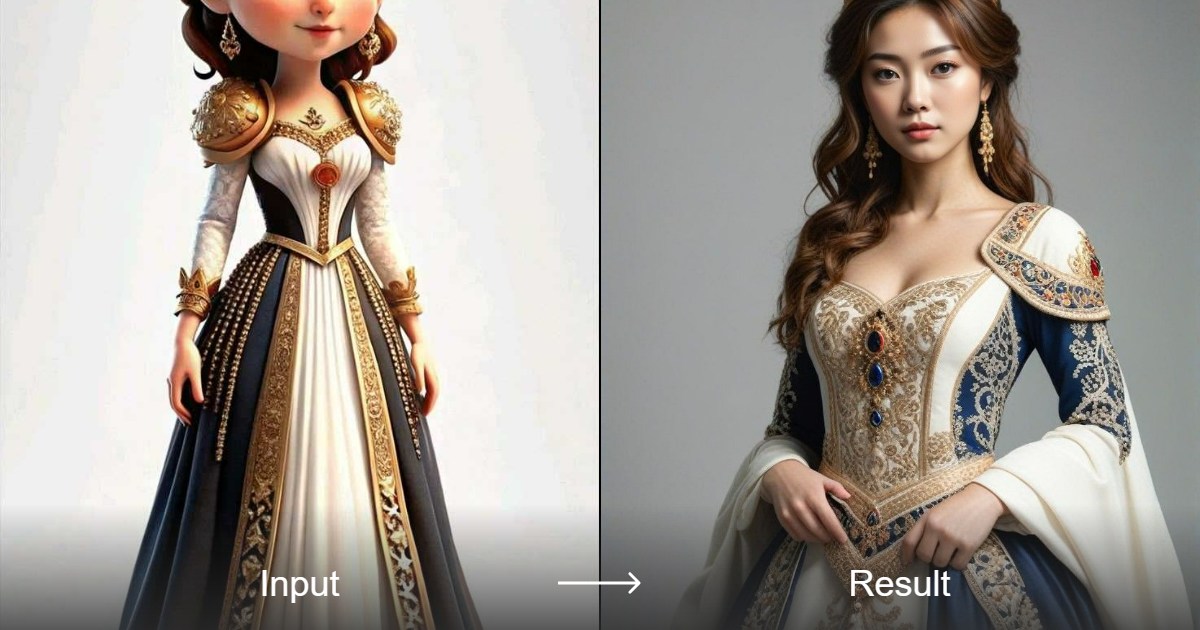 Công cụ Chuyển Đổi Phong Cách của A1.art ngay lập tức biến các nhân vật hoạt hình thành chân dung thực tế, nắm bắt bản chất của vẻ đẹp châu Á với kết quả chuyên nghiệp và sáng tạo. Trải nghiệm sự khác biệt giữa một bức vẽ đơn giản và một hình ảnh sống động tuyệt đẹp.