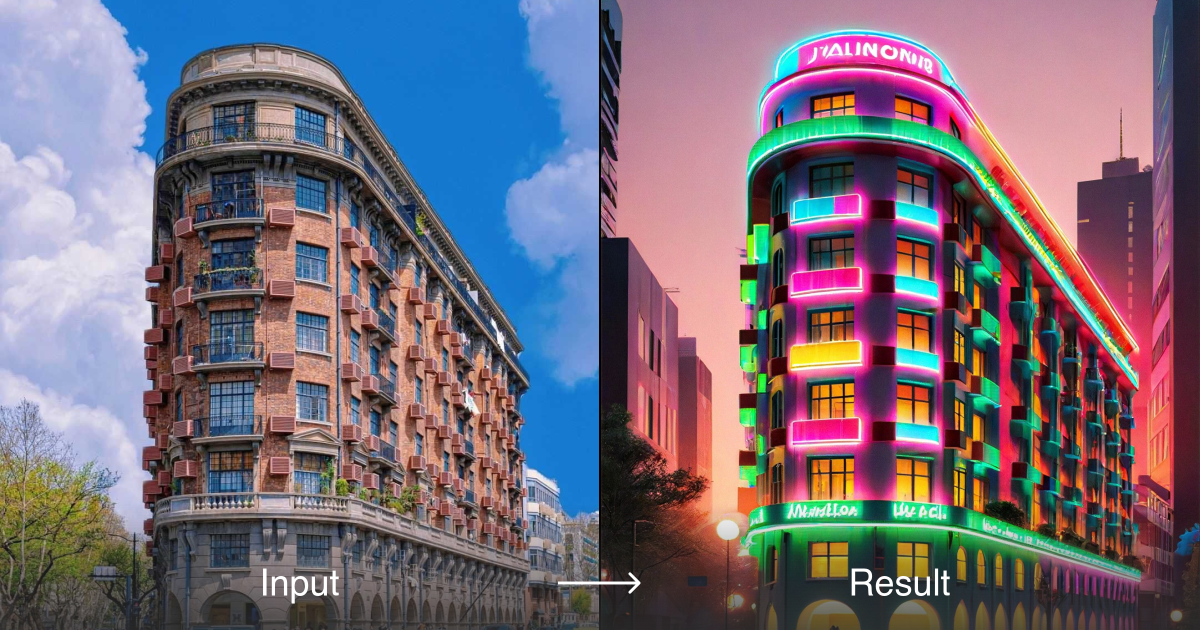 Transform Buildings to Neon Futuristic Styles Instantly | a1.art