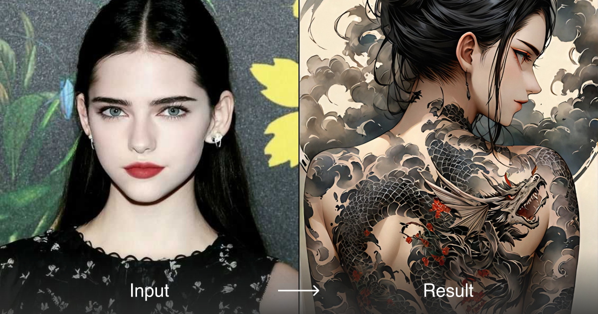 Convert your modern look into stunning Japanese tattoo art effortlessly with a1.art's style converter. Unleash a unique transformation in seconds.