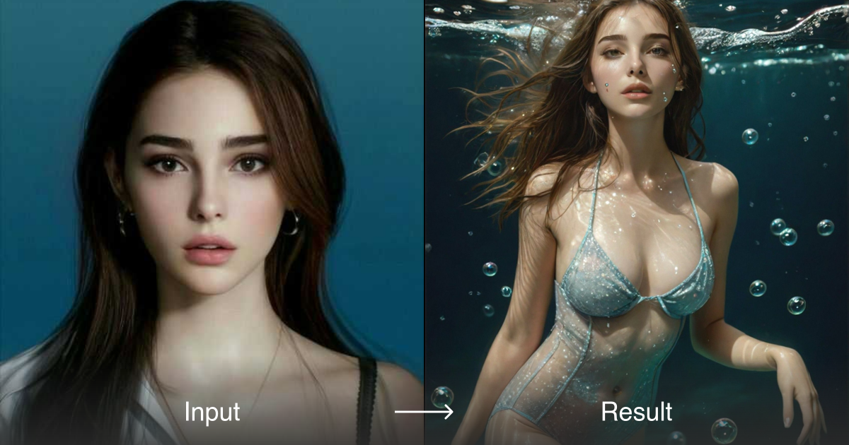 Easily switch your modern style to a stunning underwater look with a1.art. Experience an enchanting transformation in just a few clicks.