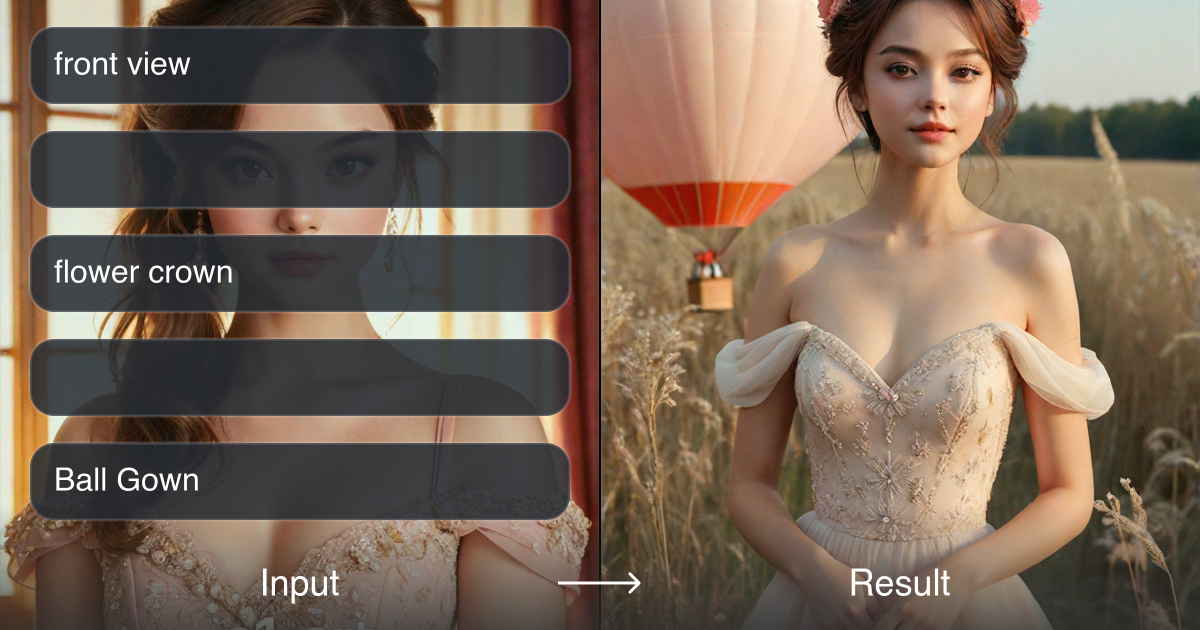 - Params:Pose , Face , The girl in the wedding dress , realistic photography , 3:4