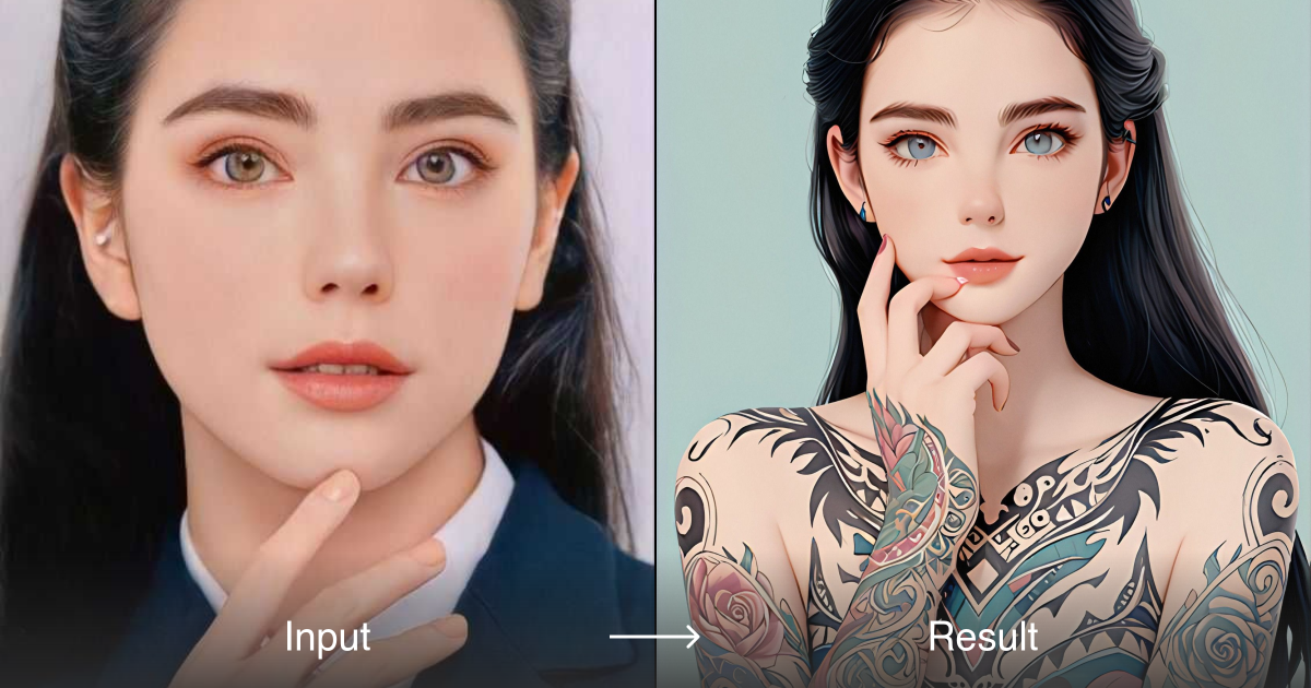 - Params:Your photo , Character v2 , Pose , Description , Style , Size