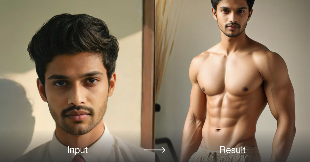 Quickly turn your formal look into a fit, athletic physique with a1.art. Achieve a powerful visual transformation in seconds.