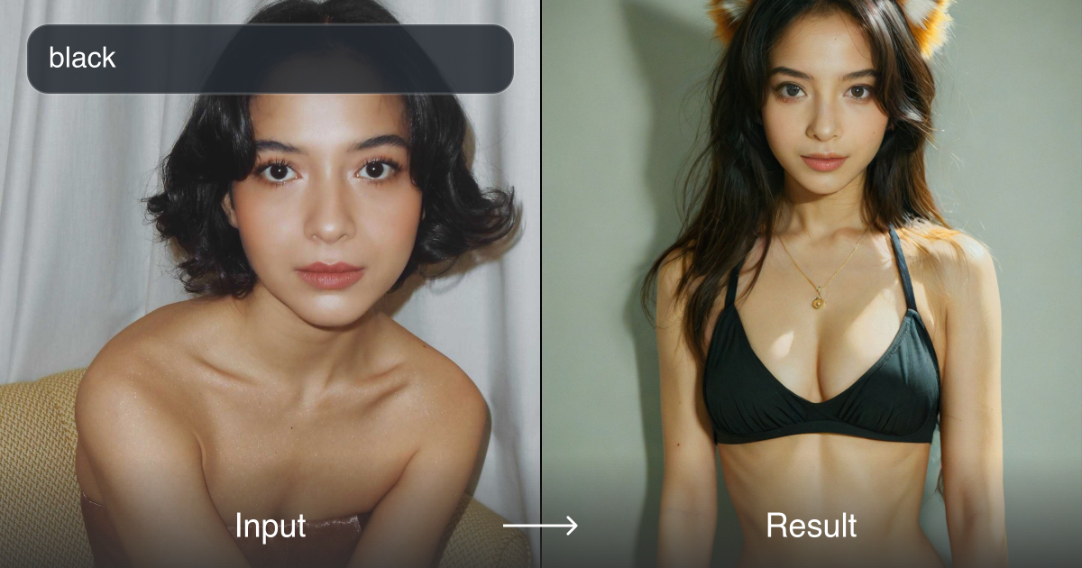 - Params:Pose , Face swap , Character v2 , Face , Description , bikini color , Size
