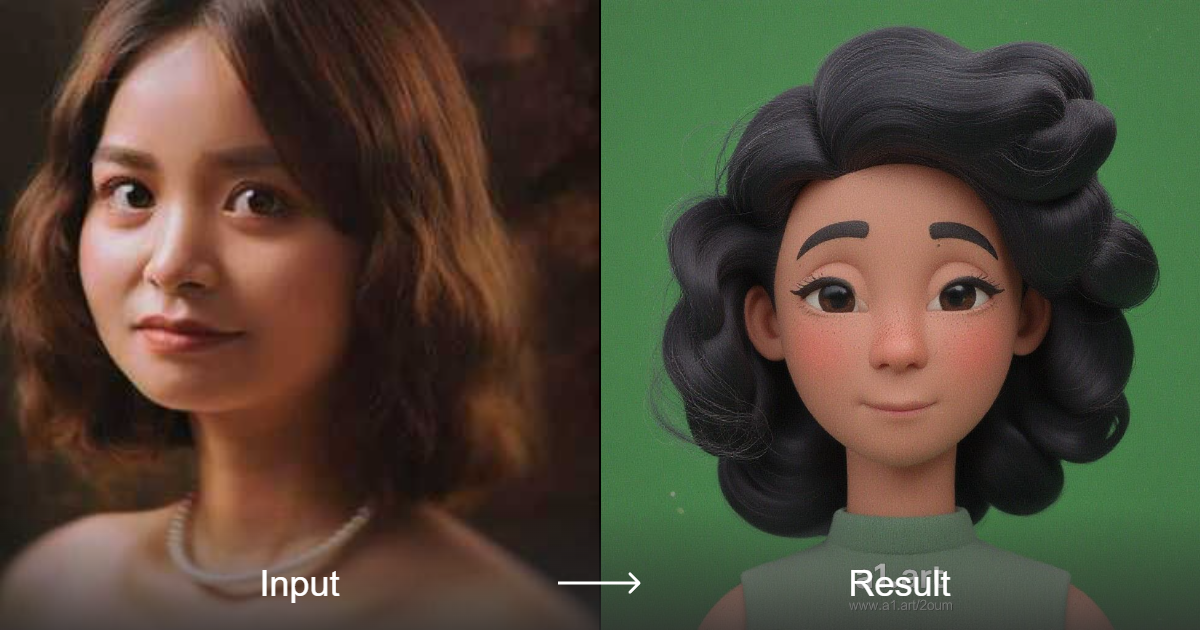 使用a1.art的AI圖像生成器生成3D卡通頭像照片。