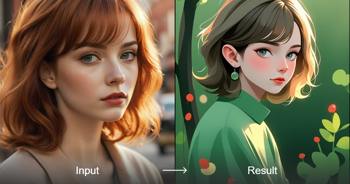 主人,用於LUmprint的數字繪畫風格轉換器,特寫鏡頭是一個穿著綠色衣服的人坐在花園裡的長椅上。