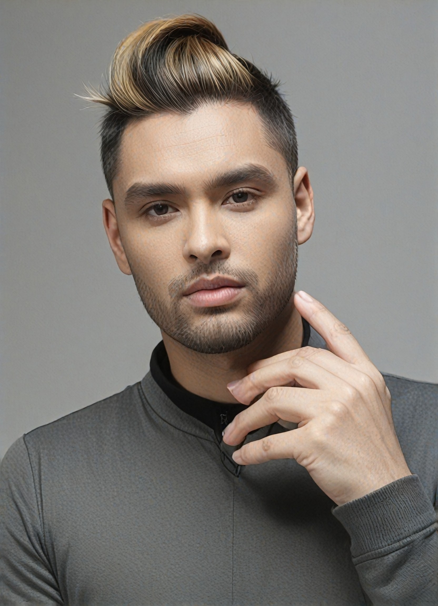 真實的、單人雙色頭髮的肖像攝影。穿上與髮型和髮色相配的上衣。嘗試使用a1.art的不同風格。