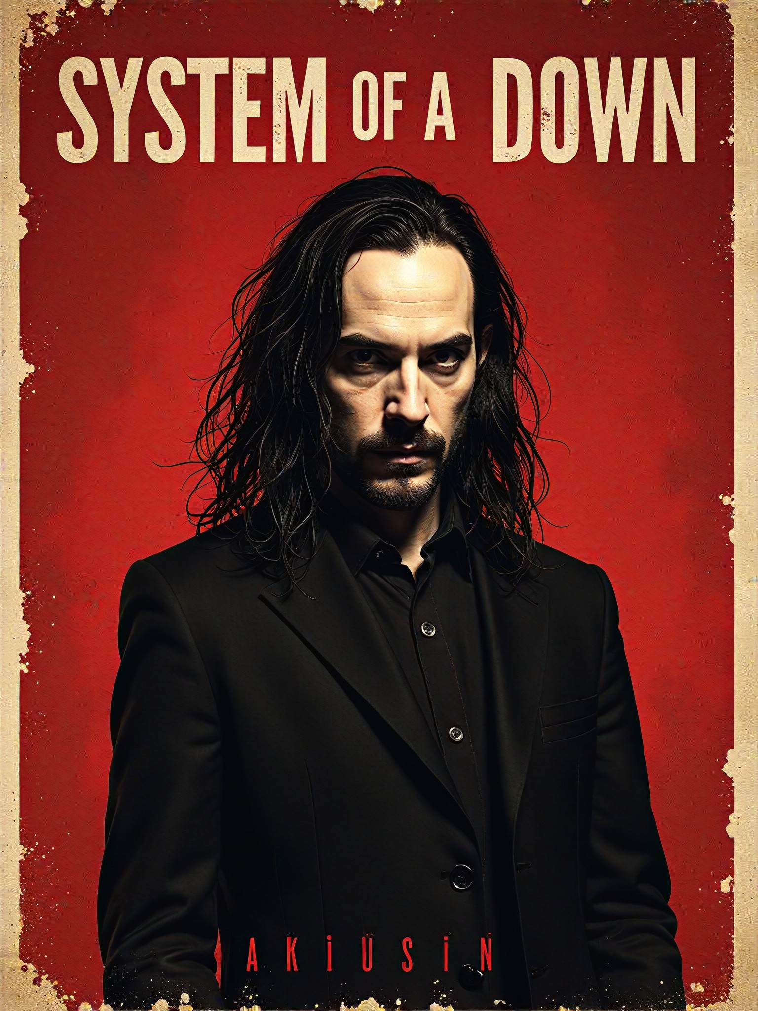 生成高质量的海报,风格为System Of A Down,并使用大师级和现实主义风格转换器。