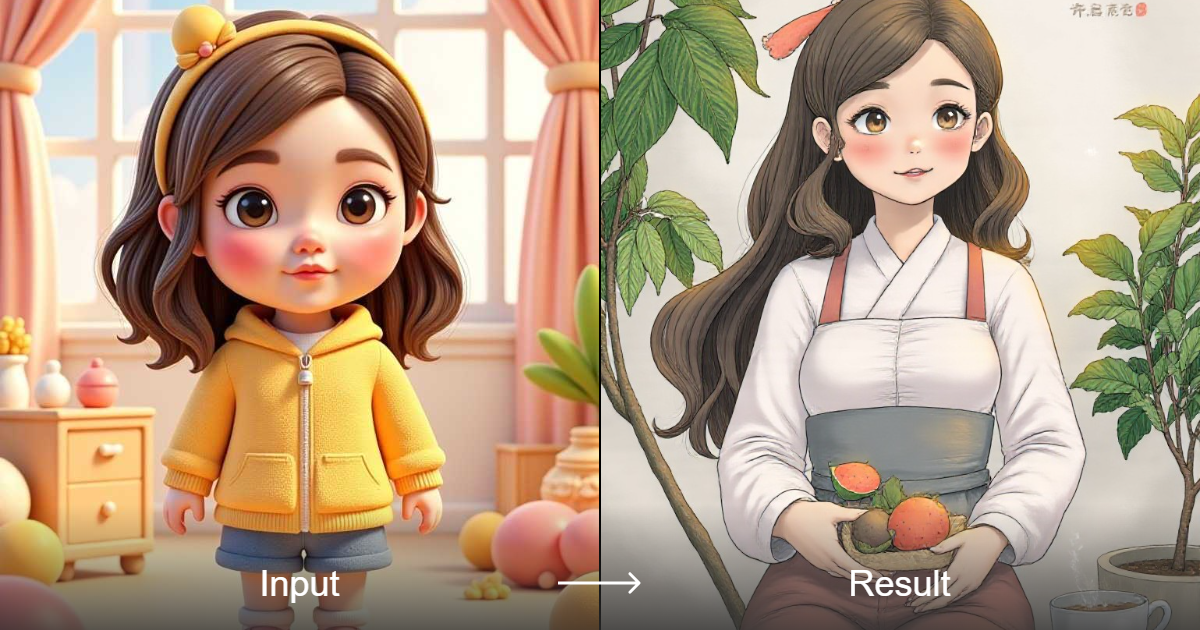 使用 A1.Art 的高级风格转换器,将您的照片转换为柔和色彩的可爱动漫风格绘画作品。