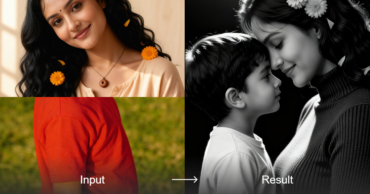 Transform your family photos into stunning 8K black-and-white art with the Parent & Child Forehead Touch filter. Create realistic, cinematic portraits effortlessly.