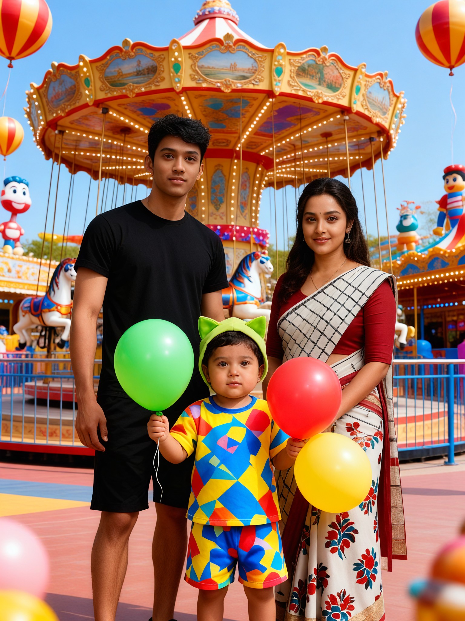 Create stunning family photos with a vibrant amusement park style using our AI filter. Perfect for capturing joyful moments in a colorful, cartoon-like art style.