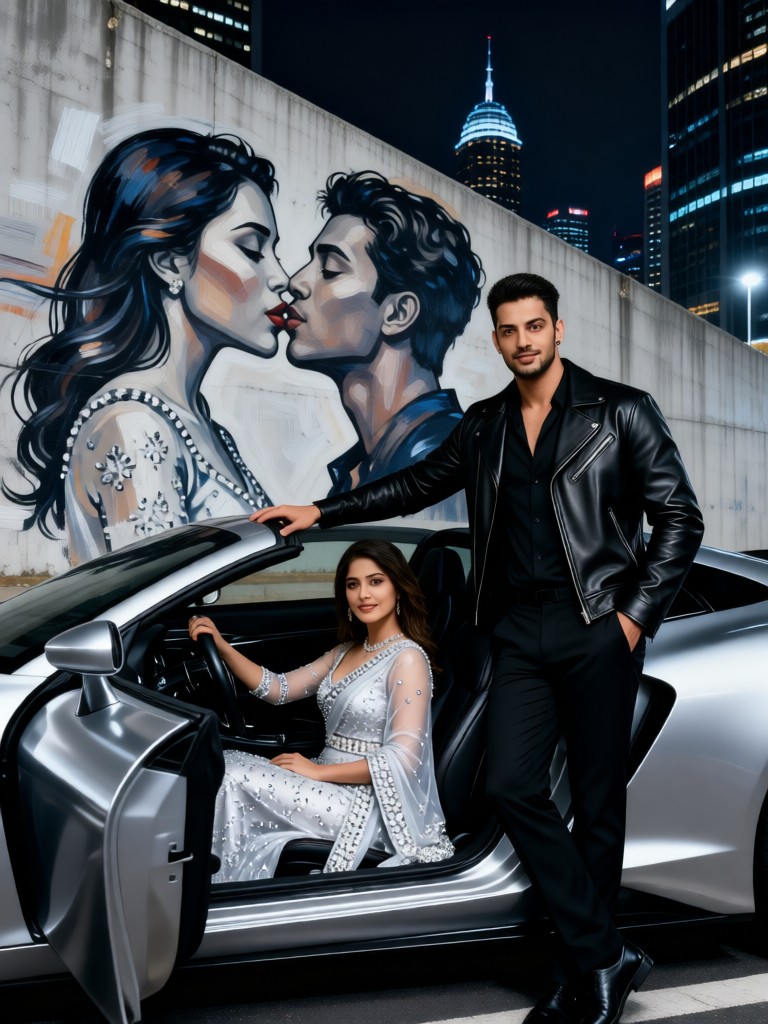 Transform your photos into stunning Luxury Kiss Drive art with this AI filter. Achieve movie-quality, luxury fashion magazine aesthetics with 8K resolution and detailed couple poses.