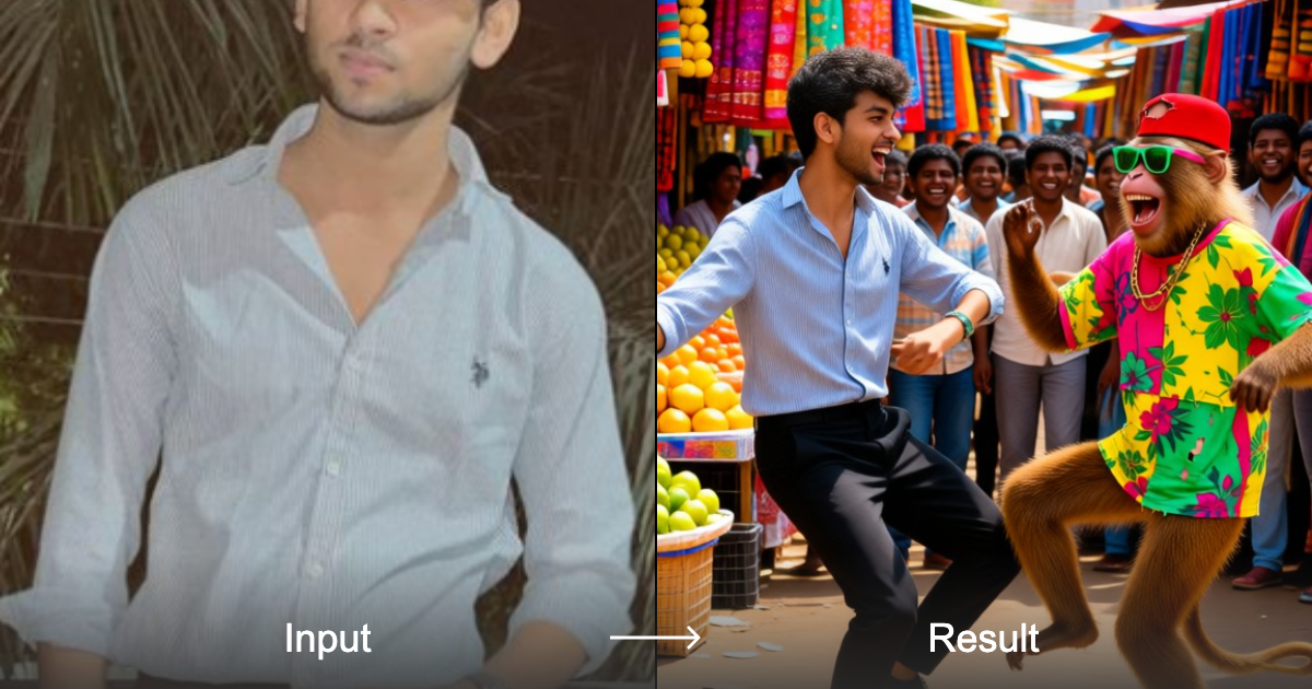 Transform your images into lively Indian market dance scenes with monkeys using our Me and the Monkey-02 filter. Create cartoon, realistic, or CG art styles effortlessly.