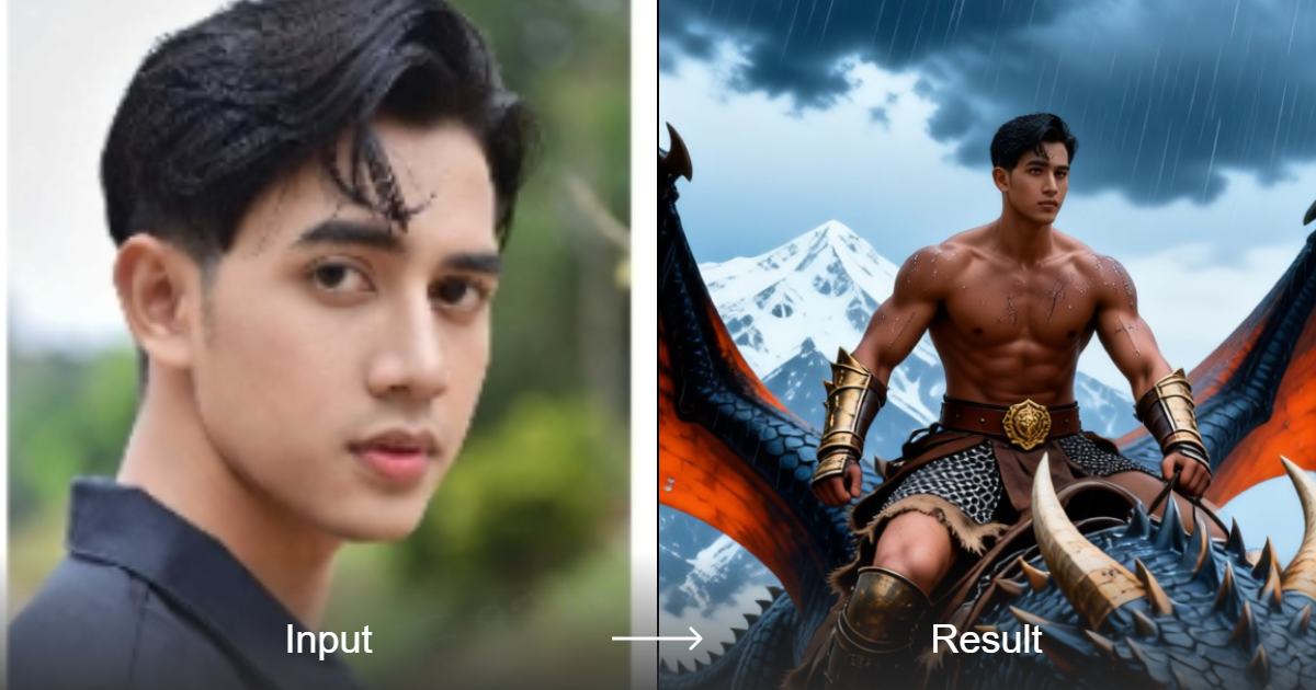 Create stunning fantasy art with the Dragon Warrior filter. Generate epic scenes featuring knights, dragons, and heroic warriors in realistic, cartoon, or CG styles.