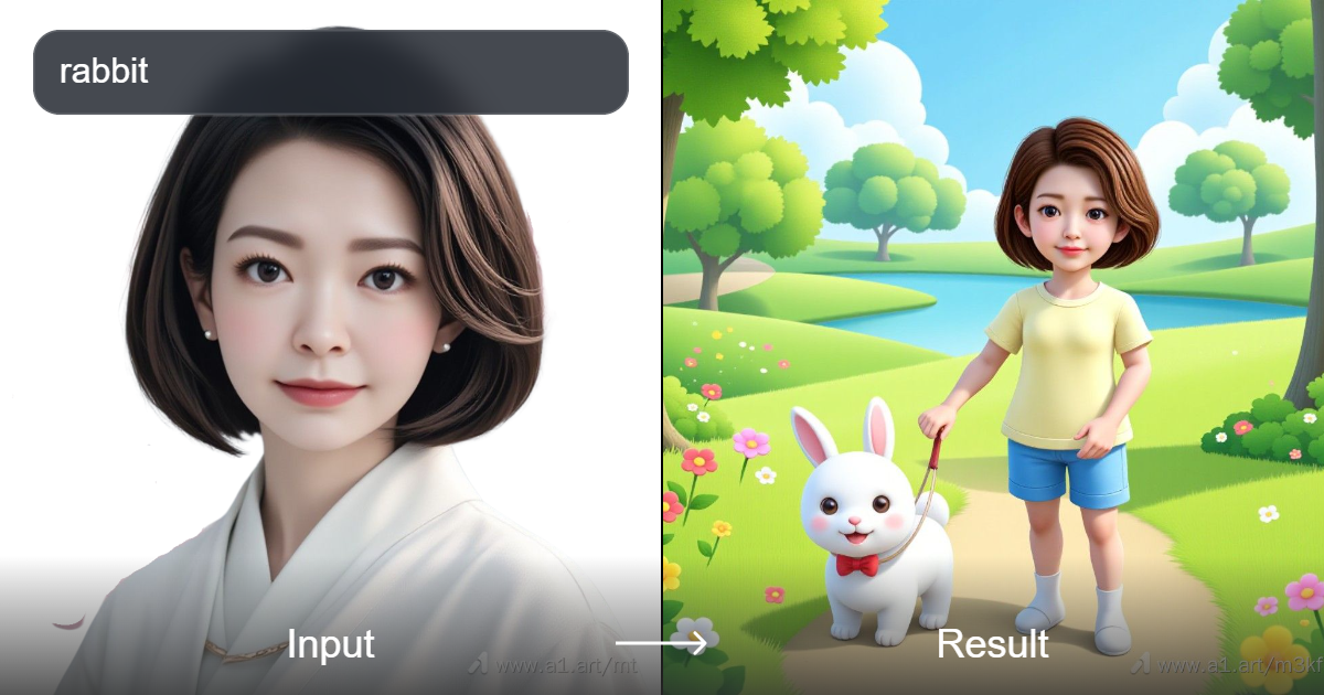 使用“与宠物同行”风格转换器生成你和宠物的可爱图像。获取让你心动的精美3D图像。