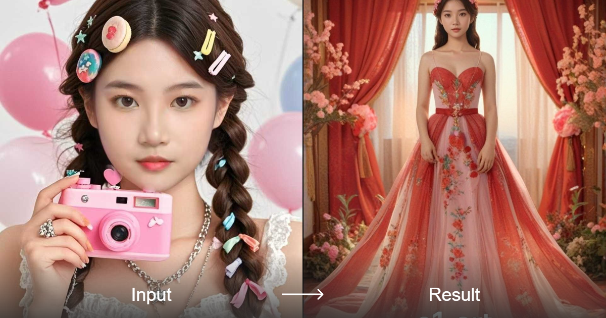 轻松使用a1.art将你的日常照片转化为令人惊叹的优雅礼服。只需点击几下,即可体验风格化的转变。