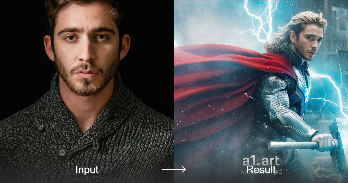 雷神索尔风格转换器 - 现实主义,专业照片,摄影,惊人的肖像,身份证照片 | a1.art