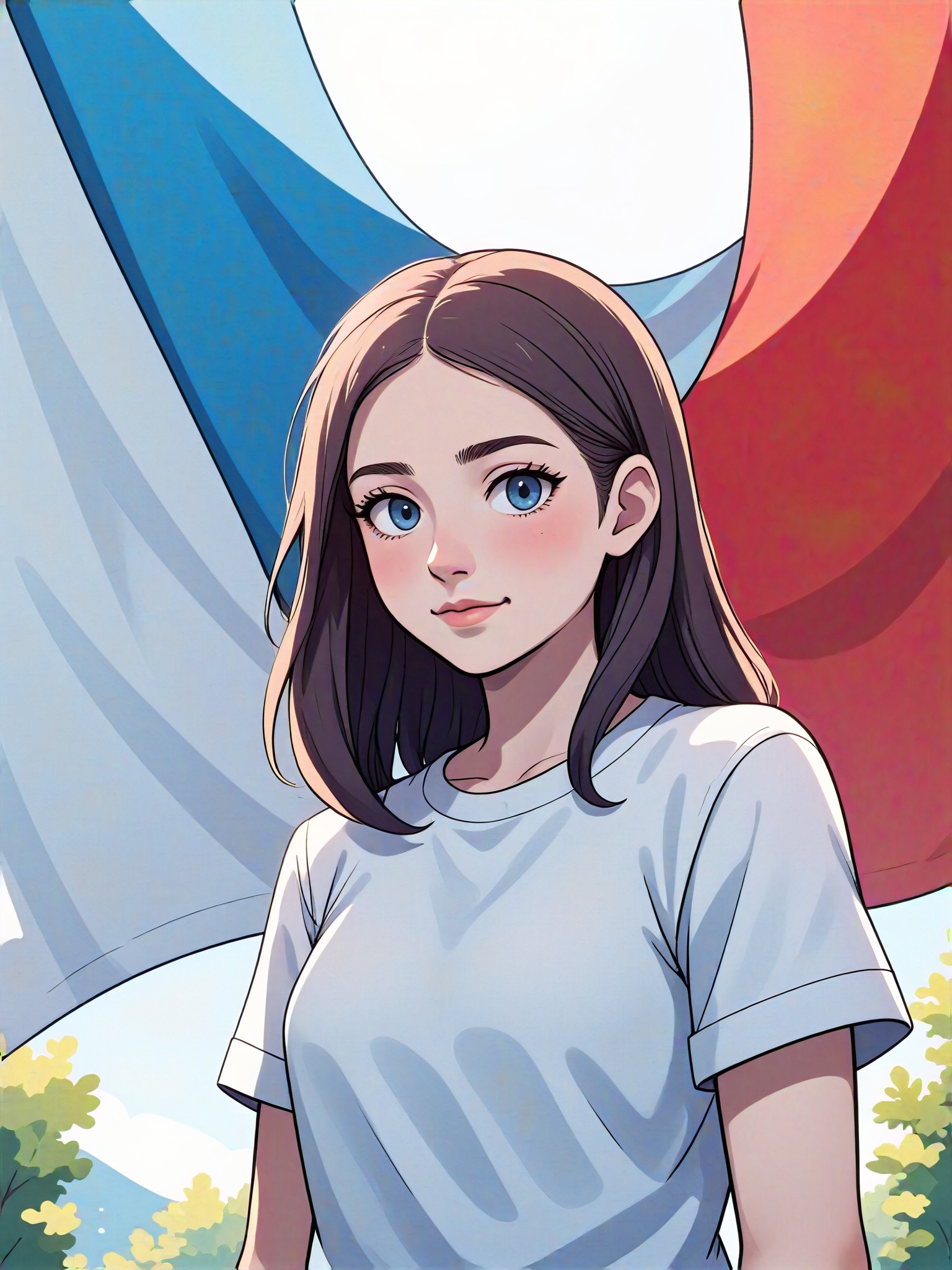 The Add Blue Red and White Flag to Photo style converter adds a huge blue red and white flag behind the figure, giving the photo a patriotic and vibrant feel.