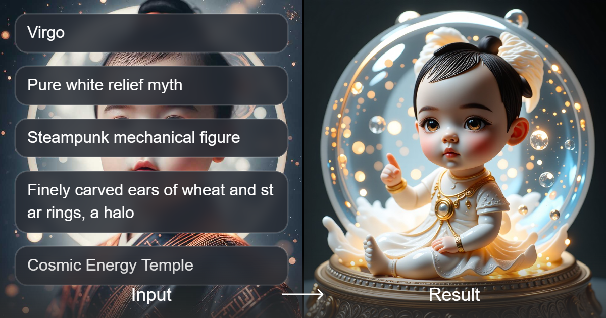 用我们独特的风格转换器将您的创意转化为迷人的水晶娃娃,提供发光、赛博朋克、科幻、精致、幻想和动漫风格。打造既精湛又神奇的个性化艺术作品。