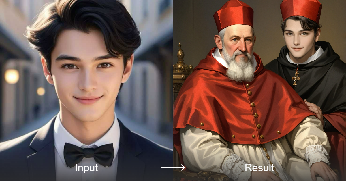 使用“教皇英诺森十世风格”照片转换器,将您的照片转换为令人惊叹的团体照片、动画、数字绘画、2.5D 卡通、幻想场景等。