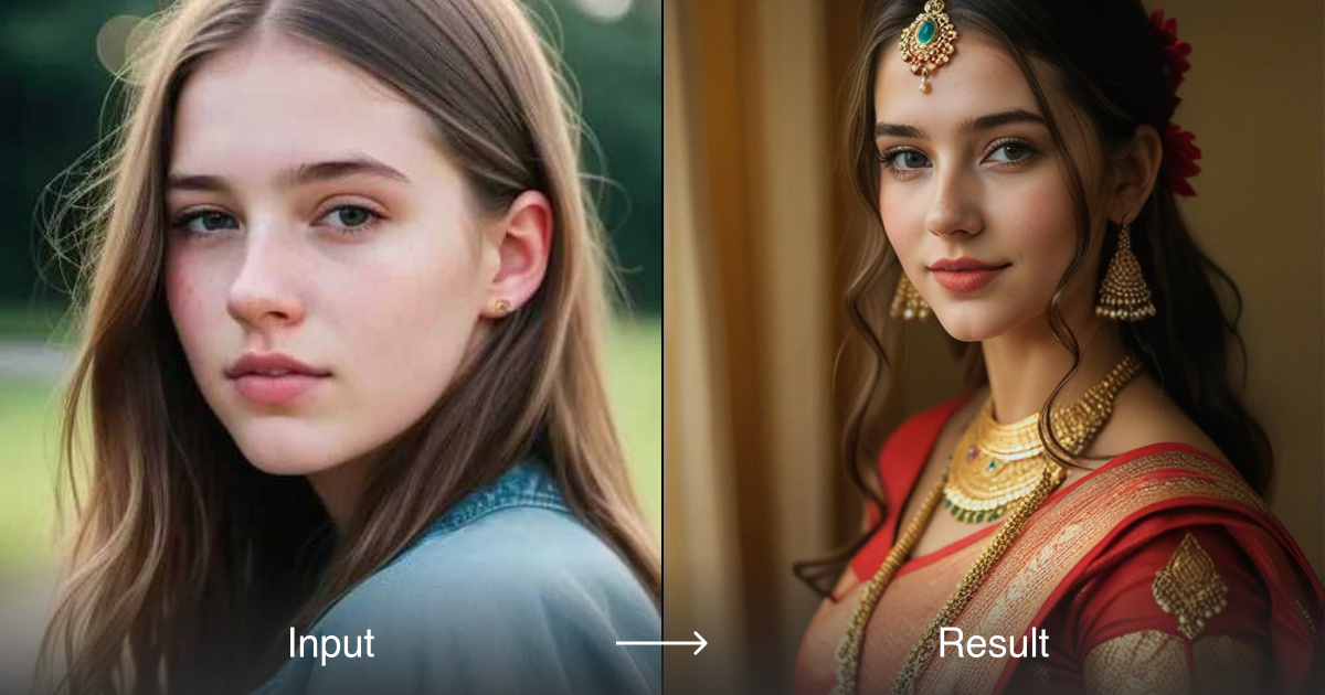 使用a1.art轻松将您的照片转换为迷人的传统印度服饰。只需点击几下,即可体验文化遗产。