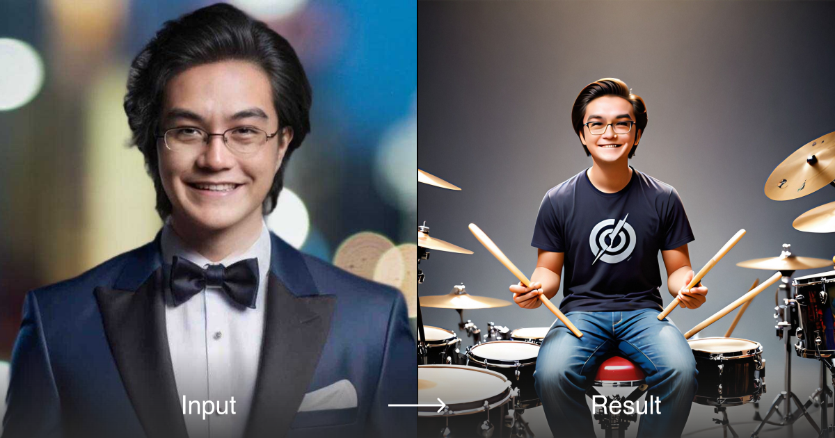 使用a1.art轻松将你的照片从正式装扮转变为时尚音乐家的装束。几秒钟内快速创意地变换照片。